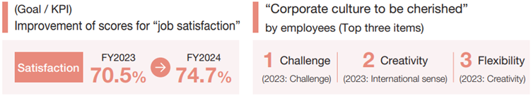 We have been conducting awareness surveys for many years to measure satisfaction levels among employees (including temporary staff) and utilize the results in our labor policies and other measures. In the 2024 survey, we found that their high level of satisfaction remained stable. We will continue to conduct awareness surveys as appropriate to ascertain employee satisfaction.
