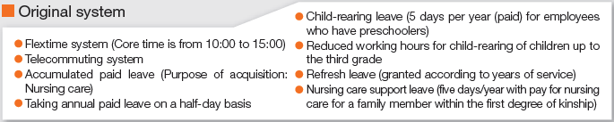 We have introduced various systems related to employment and are working to realize flexible work styles for employees.